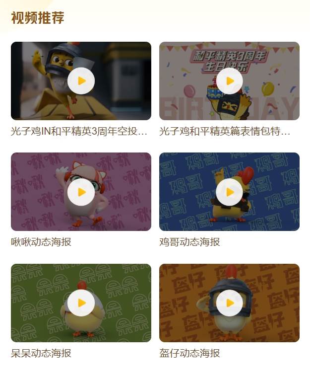 在“视频推荐”板块,特种兵们可以通过动态海报、故事视频、出道视频等精品视频内容,进一步了解“光子鸡小队”的故事。