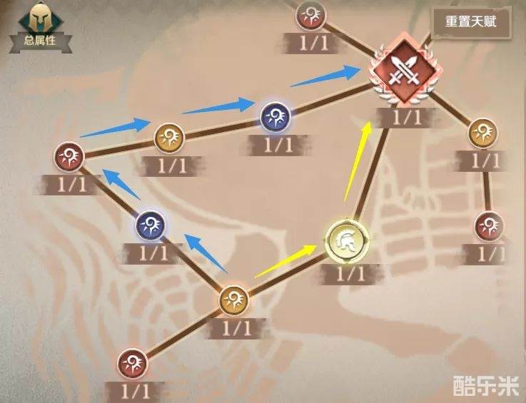 对自己天赋路径路线不满意的小伙伴也可以使用古卷右上方的重置天赋按钮进行重置。