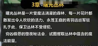 曙光丛林是游戏中的第三阶段,是主角团帮助永茂王庭对付堕夜秘法会的剧情推进,也是玩家进一步增强实力的机会。游戏正式的步入正轨,逐渐脱离了新手指导。第三阶段有15局对战要进行,并且越往后面的对局敌人越强,目前的阵容强度已经不足以支撑对敌,可以选择直接升级一路锻炼过来的英雄,但小编更推荐先去招募一些更强有力的英雄。