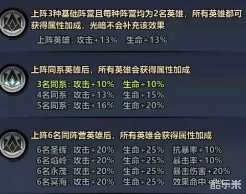 到了三阶段后期,还暂时不需要考虑属性压制的问题,但可以搭配一些独特的羁绊来增强作战的效果,目前来说圣辉出现的英雄是最多的,玩家可以在三圣辉出战的前提下,满足特殊阵容的羁绊,这里比较推荐搭配永茂阵容,因为永茂阵容的英雄也已经有了一两位在场,并不难凑齐。当阵容全体都有着不俗的战斗力后,就可以与敌人抗衡,即使敌人达到了40级,只要阵容合理,也同样可以击败对手。