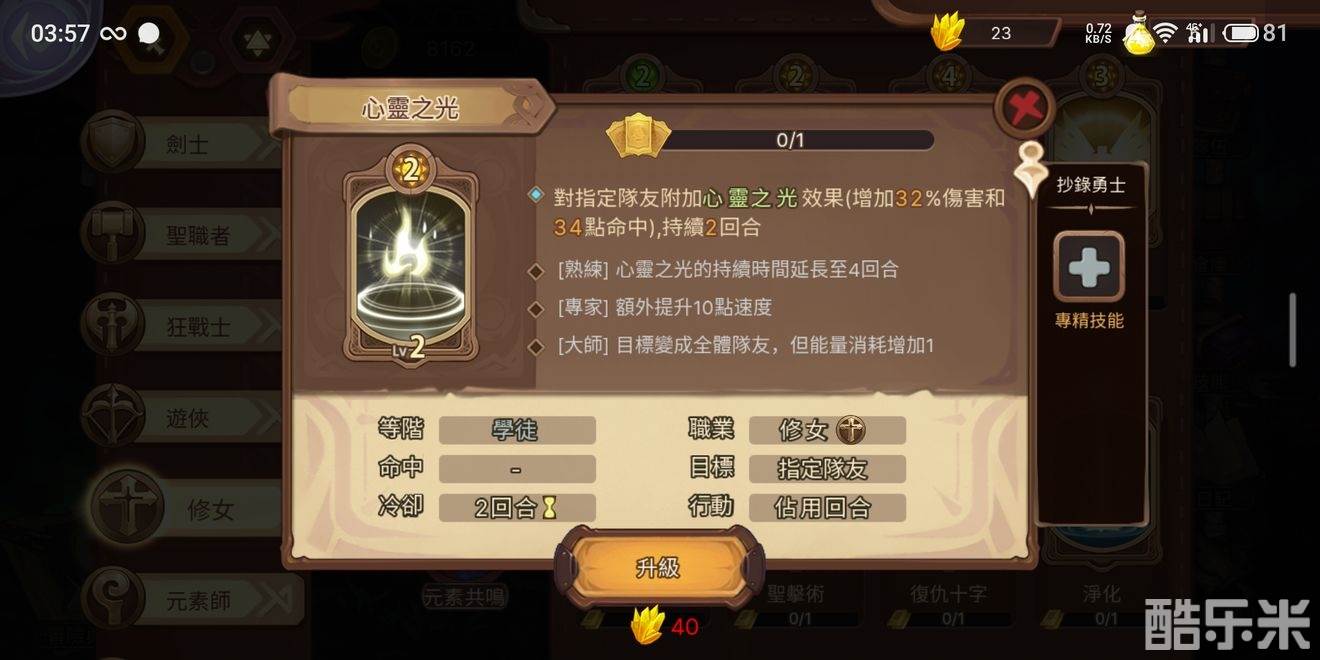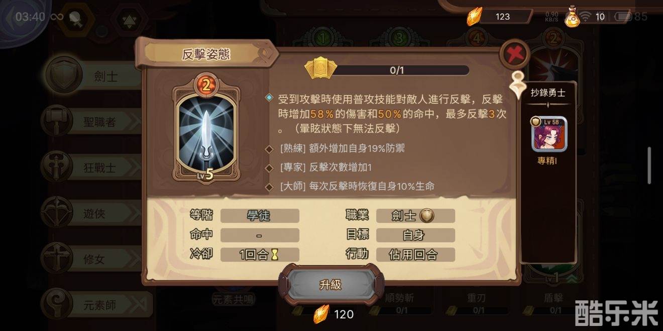 反击:反击三次,提供伤害命中加成。仅5级的反击就有了58的伤害加成,战士反击一刀一个小怪并不是难事。反击和后面烈焰盾最好有一个进阶1,最最好是反击。