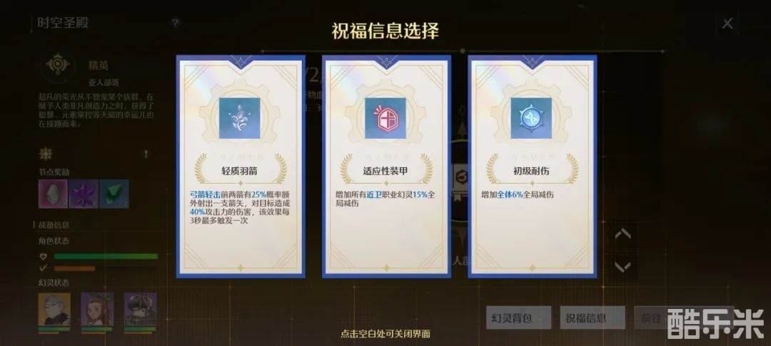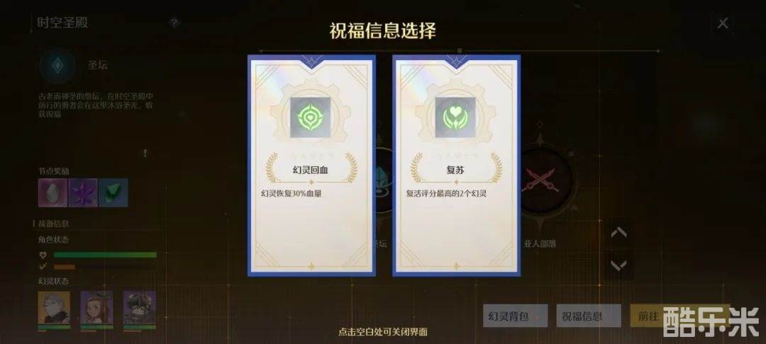 圣坛、时空谜题以及宝箱的祝福信息,就需要冒险家们根据自身状态来进行选择了。