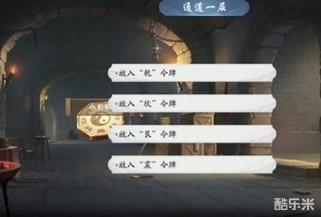 这里解密的机关是八卦锁,所以其实是有对应八卦的八种令牌可以选择的。