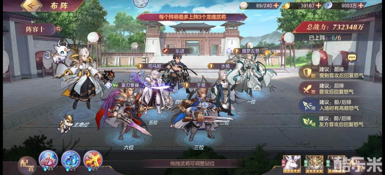 第二种是内卷左慈的,乐进拳头叠上去伤害挺可观的,而且助战用五星穷奇和龟。至于为什么有蔡文姬和司马懿两个选择,蔡文姬保好人乐进,内战大提升,但容易被雷云秒,常规都是水镜吃嘲讽。带司马懿是打内外战都能打的舒服点,残局爆发厉害,战区我70亿上分挺不错的