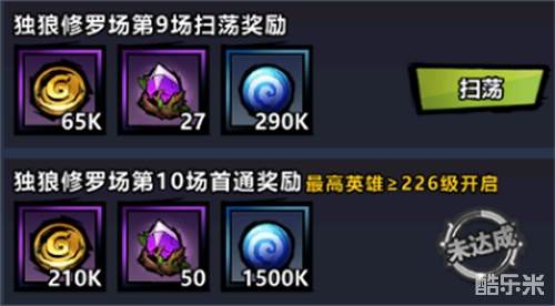 4、独狼修罗场需要最高英雄等级达标才能挑战。