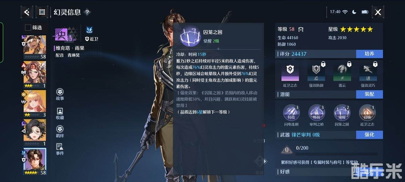 薇莉安的选择主要是对雷霆种族有克制作用,还有持续的灼烧伤害;诺亚与维克塔的选择在于他们既有输出也不缺乏坦度,还附带怒涛的霜语效果,雷霆的短暂范围伤害;伽诺斯由于前期的培养(达到6星时已经很强了,不升级品质也是足以使用爬塔的),作为一个雷霆种族游侠可以远程输出,来弥补阵容输出的不足。