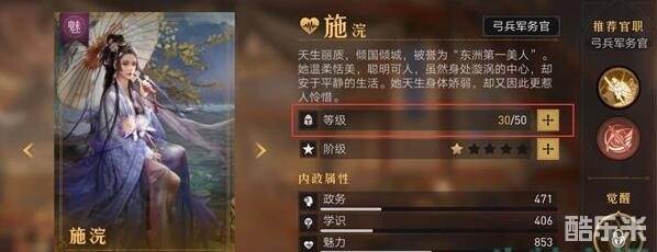 进入到内政官的详情也,在等级的右边点击加号的图标,对应的即可对内政官的等级进行提升,每一个内政官的等级越高,探险值也越高。
