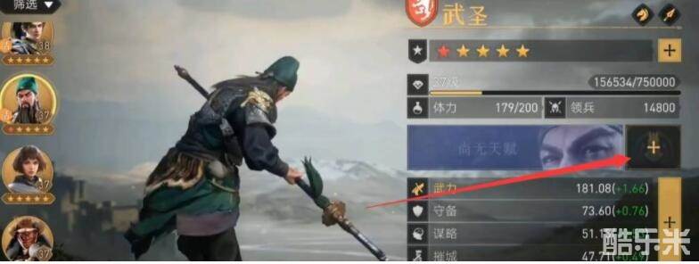 2、打开武将的个人资料,在天赋的右边即可点击坐骑进入;