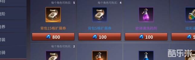 第二方式就是使用背包扩充券了,这个道具在稀世珍宝商店里面有出售,分为五个扩充、十个扩充和十五个扩充的,玩家要使用蓝钻来进行购买。不同级别的消耗的蓝钻数量也是不同的,在有了扩充券之后,使用就可以带来背包格子的扩充了。
