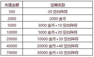 【活动内容】金币奖励满额返还,额外赠送大量空白阵符,天地水火,风雷山泽,奇门阵符,尽收囊中,一切尽在本期月末超值大放送。