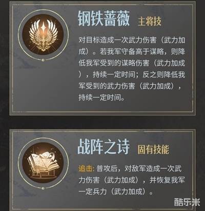 被动:我军兵力低于50%时,在9秒内,我军每秒恢复兵力(恢复率90%,守备加成),受到伤害降低40%。(该效果在2分钟内最多触发一次);我军兵力越低,自身守备越高,每下降1%兵力提升1守备值(兵力50%时达到最大加成)。