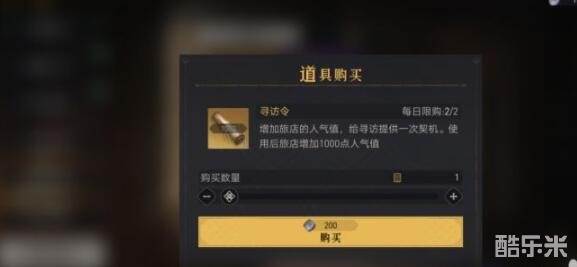 增加旅店的人气值,给寻访提供一次契机使用后旅店增加1000点人气值