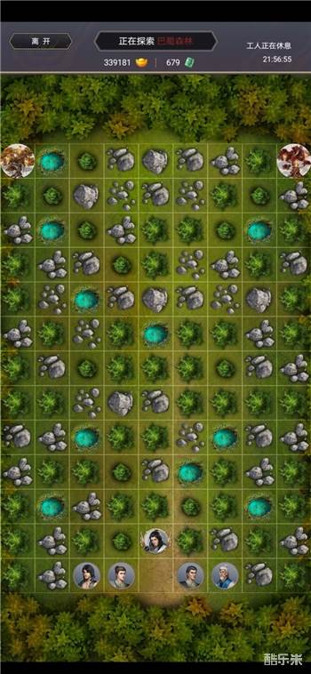角色在下方正中,两侧都是工人,左上角为万年树,右上角为珍品万年树,其他格子都是各种类型的障碍,玩家需要清除前往万年树路上的障碍,打开一条通路以后把万年树带回家,具体方式为花元宝请工人帮忙清理,每次清理后工人都需要休息一段时间,使用1块和田玉可以让工人马上投入下一次工作。根据障碍的不同,花费的元宝和工人休息的时间也不同,对应关系如下: