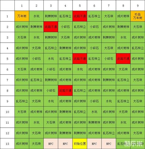 2.大地图出现巴蜀森林,进入后为横9竖13的地图,如图所示: