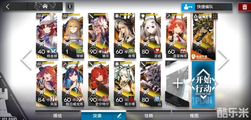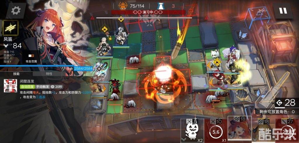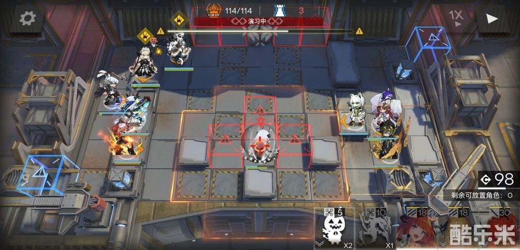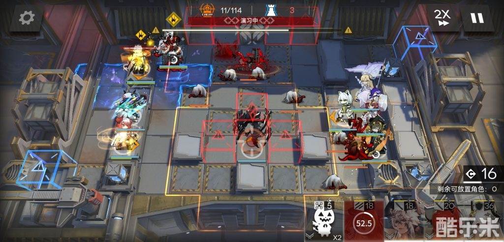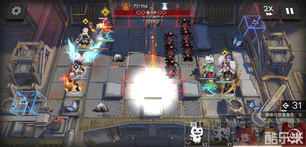 开局下人顺序:桃金娘,琴柳,山,风笛(老鲤左边格子朝下,不过放老鲤位置也可以),水陈(朝上),菲亚(朝右),夜莺(朝下),凯尔希(朝左),撤风笛上老鲤(朝左),费用差不多够用撤琴柳,放m3朝上。