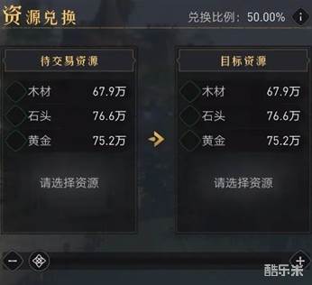 在主城内解锁建筑市集后,玩家可以在市集将木材、石头和黄金三种资源进行置换,对于紧缺的资源可以解燃眉之急。