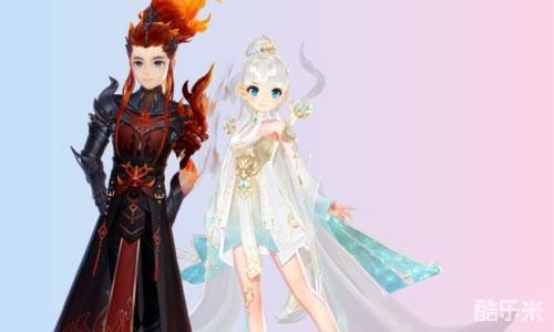 黑色玄甲覆在身上,加上火红色的点缀显得男款十分霸气,女款的裙子搭配上精致的白发显得仙气飘飘。