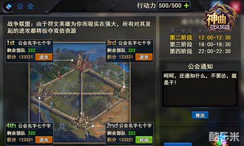 除了有一支固有的NPC守备部队之外,公会长还可以任命本公会的任意4名玩家作为守备主将,固定在25%、50%、75%、100%四个阶段的守备位置出战,这4名玩家主将,享有额外层数的守备祝福加成。这样玩家在《神曲之符文英雄》的跨服公会战中,就不会再轻易被攻破城池,可放心出战!