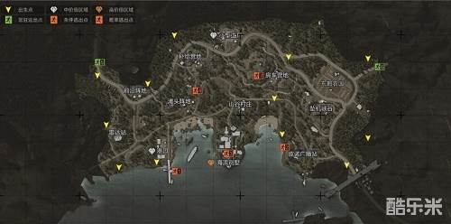 1.地图下方资源点较为密集,不过多为房区、海滩和公路,且各个资源点相距较近,枪声很容易传到周边,不免会引起别人的注意来劝架。