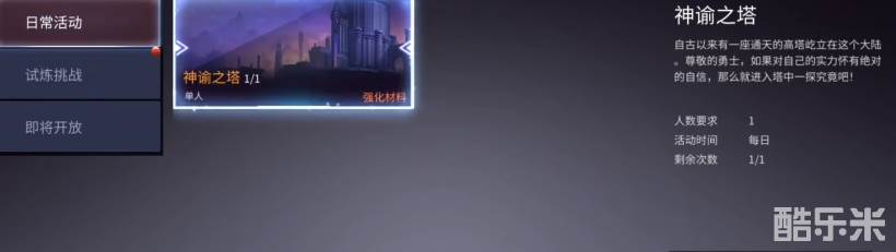 神谕之塔作为一个挑战类型的玩法,大家要知道的是这各玩法是爬塔类型的,层数方面是没有上限的,所以说想要打通的话还是不可能的。而玩家在这个玩法中主要的目标就是怎么打到一个较高的层数,因为层数越高奖励才会越好的。