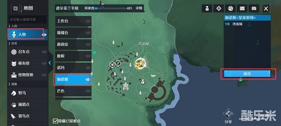 1、在游戏中,我们打开地图,然后在地图的人物中选择到伽诺斯,然后点击前往就可以了。