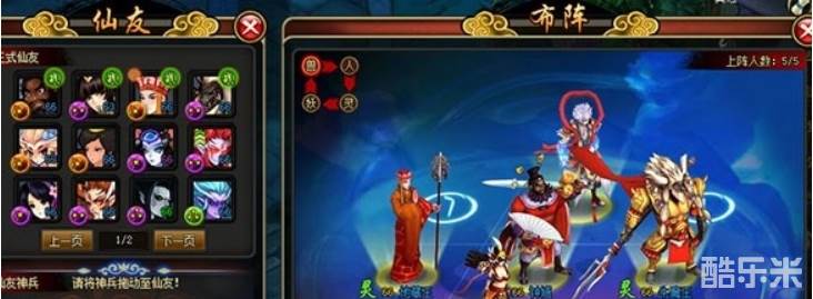1、仙友神兵栏只有在布阵界面操作,其他界面不能操作。