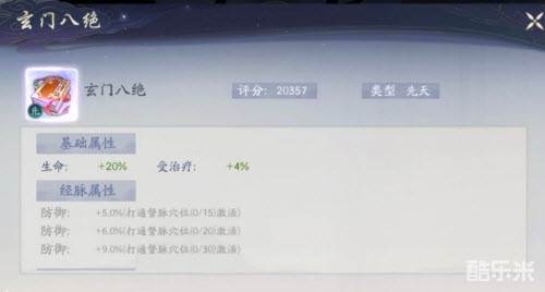 全部加成:受治疗+4% 生命+20% 防御+20%