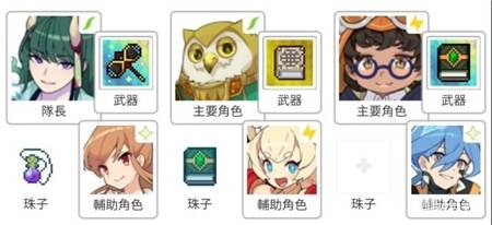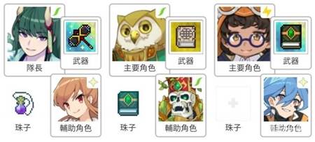 充能书需要提供50或以上(一破或以上)充能,超风书满破,猫头鹰珠子可替换为浮游杖等增伤珠子;充能书0破/只有满破暗双刀时,超风书必须卡3破,猫头鹰也必须携带死皇书珠子,武器则选择合适的40充武器;火狼可替换为蘑菇(换了要把武器换成水滴活动送的宇宙项链);光王子可替换为不死王;组队时尽量保证打手均采用相同队伍避免卡c