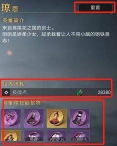 1、点击对应的英雄左下角书本可以进行重置,可以看到重置的材料;