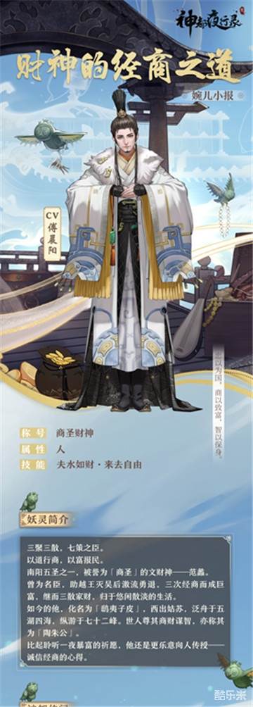 泛舟云游五湖,行商亦济天下。网易新概念妖灵大作《神都夜行录》全新异妖灵“陶朱公”登场,谈笑诙谐彰显名臣风流,博古通今当是儒商神采。