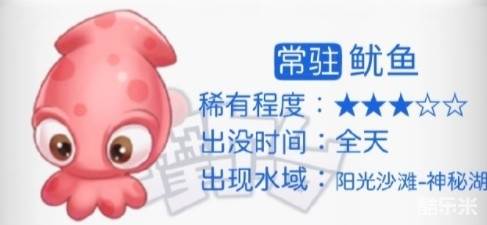 鱿鱼为常驻鱼,大家可以随时随地的钓取啦,不是限时传说鱼哦!