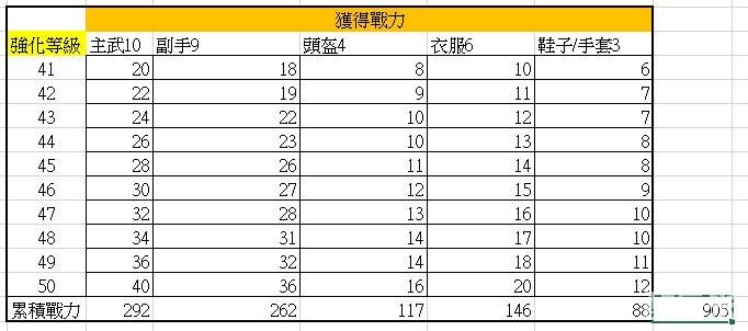 3. 本系统如全部突破至X等级 (+50) 可获得 905 点战力.