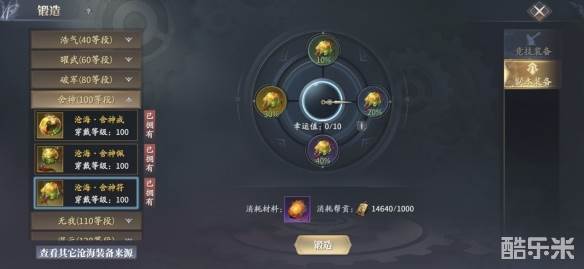 (2)副本装备锻造:帮贡还有一项很重要的作用,在每等级阶段用以锻造副本装备,如沧海戒指、佩、符,可以迅速提升角色修为。锻造所需材料,玩家可以通过生活技能自行打造,也可前往集市摆摊处购买。(装备锻造系统每次打造的装备品级均随机,但有幸运值保底必出)