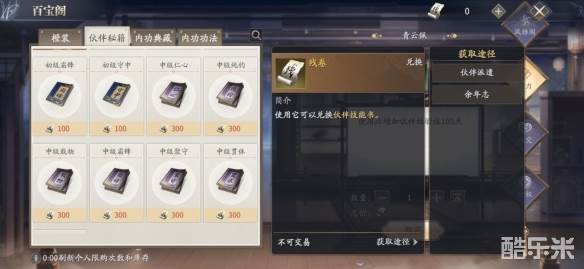目前只推荐兑换消耗300残卷的中级伙伴秘籍。