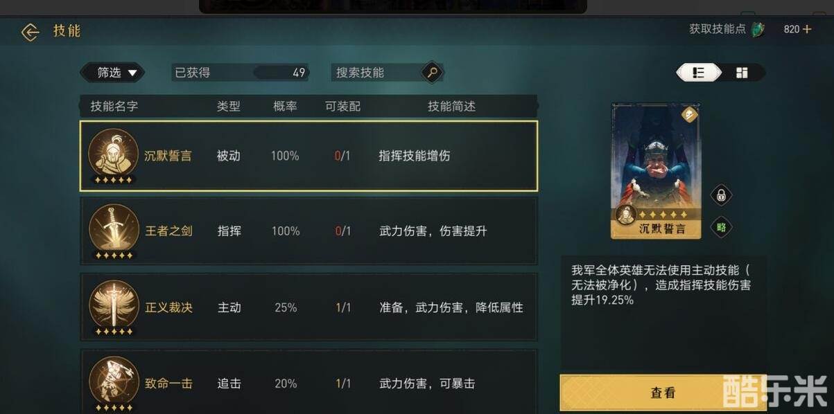 指挥技能为固定间隔时间触发,虽然稳定,但单次伤害比主动和追击两类技能低一些。