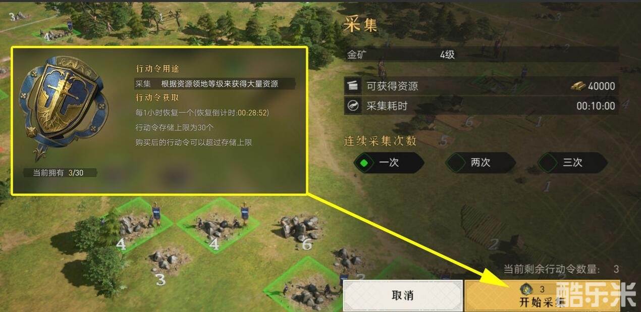 行动令我建议在打架或者盟战前收集资源使用,主要是太贵了,玩家如果和盟友关系好可以通过大使馆交换资源,行动令最好要留在紧急的时候在使用,轻易不要乱用。值得注意的是行动令并不是完全无CD冷却,它依然存在十分钟CD,玩家们一定到算好提前量不要因此错过盟战。