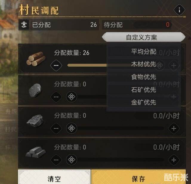 建设居民房舍后,可以调配里面的村民,按需生产四种材料。