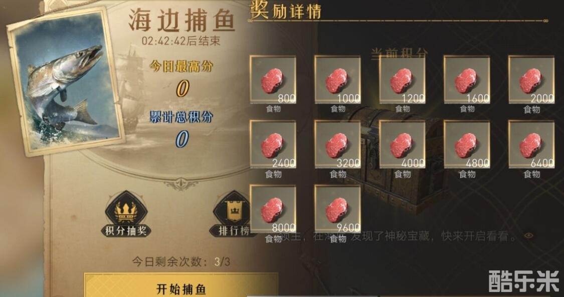 建设码头后,每天可以进行3次捕鱼,积分可用于抽取粮食奖励,加入联盟还有每日排行,一次性获取大量粮食。