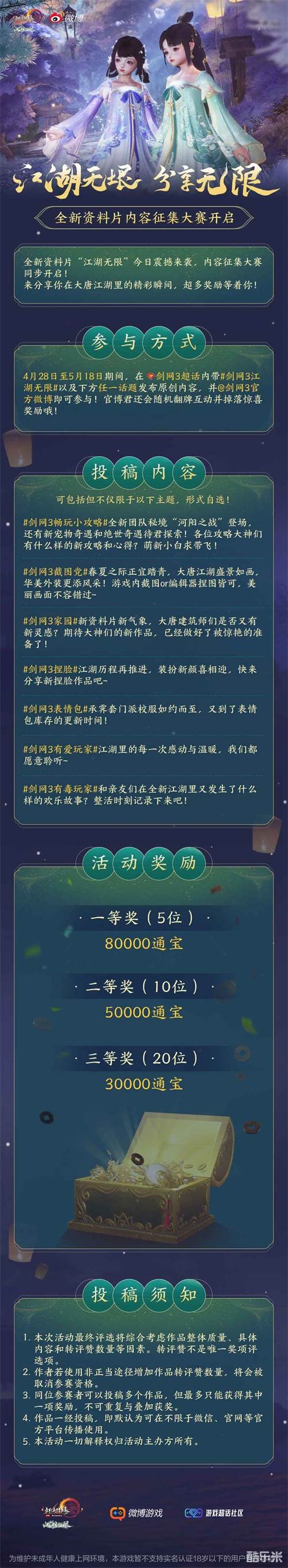 与此同时,@剑网3官方微博 也带来了有趣的新活动!今日起至5月18日期间,侠士可前往@剑网3官方微博 参与全新资料片内容征集大赛,分享你在大唐江湖的精彩瞬间,参与即有机会获得超多丰厚奖励!