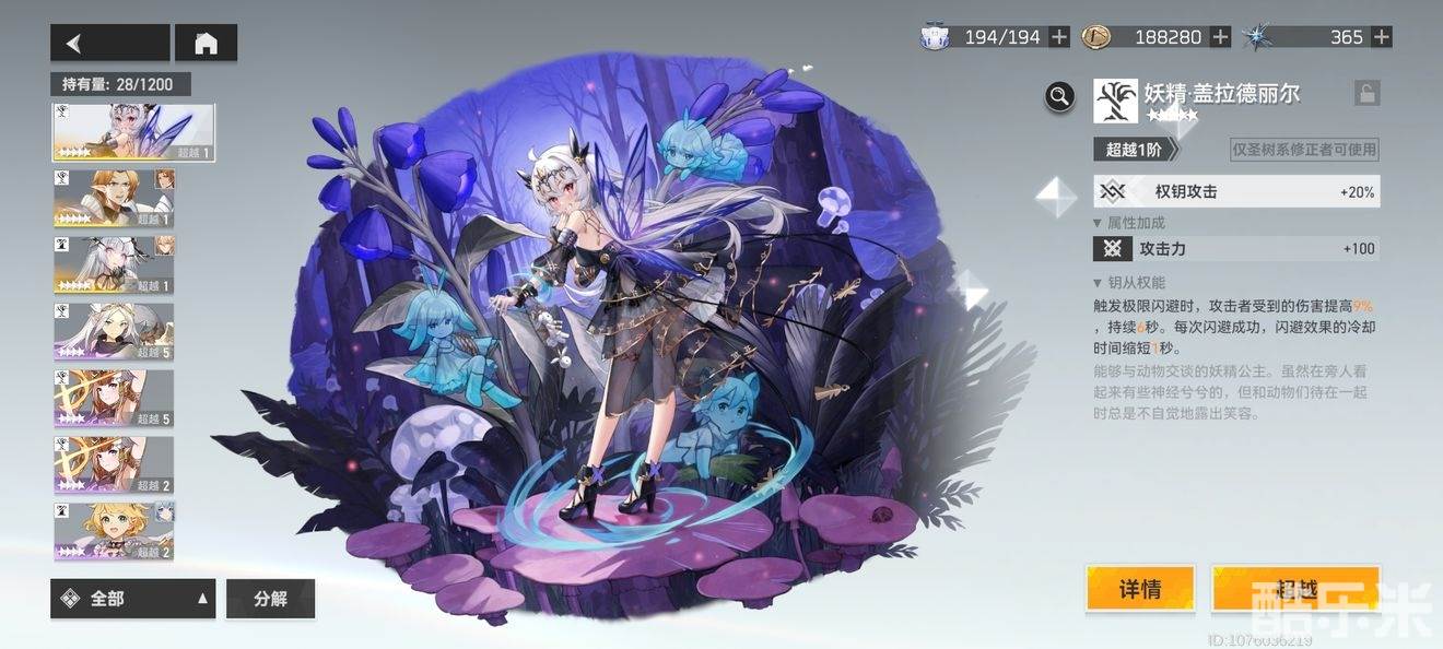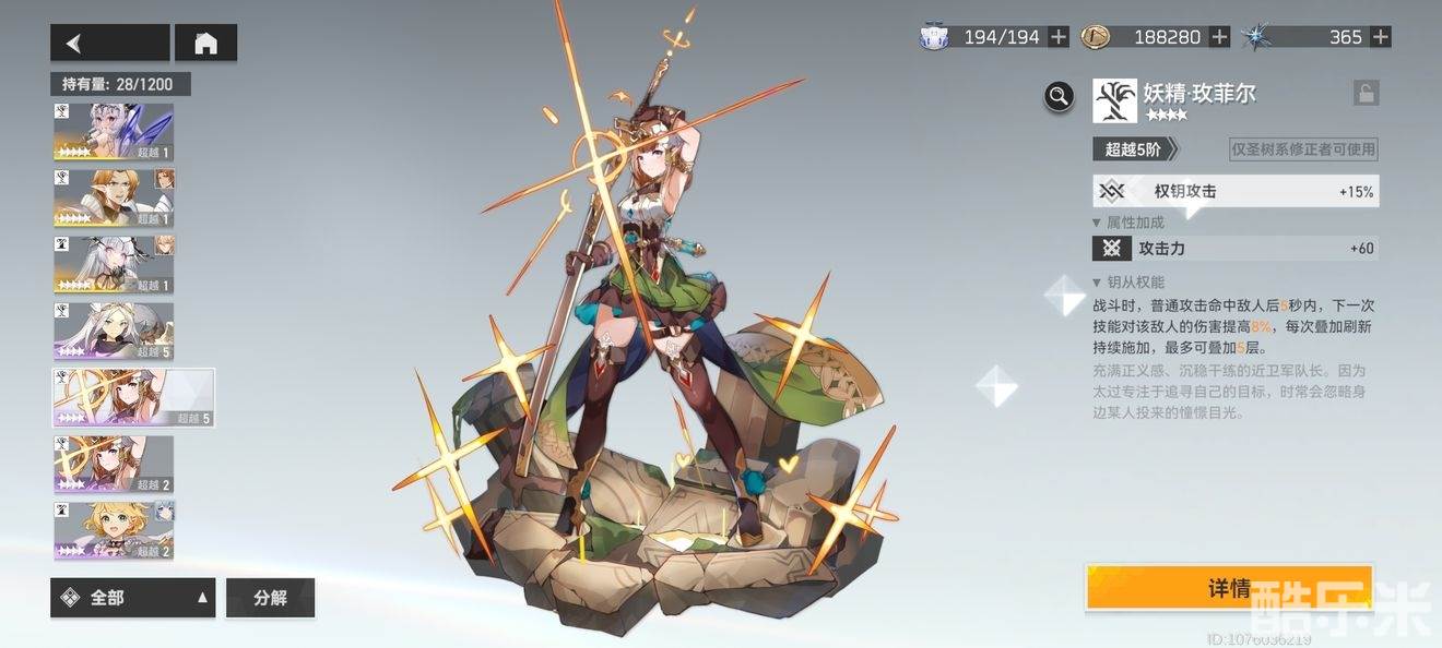 权钥方面没有金的可以选择蒂雅姆,不过盖拉德丽尔的获得非常简单所以没有专武基本选择盖拉德丽尔也是很适配的