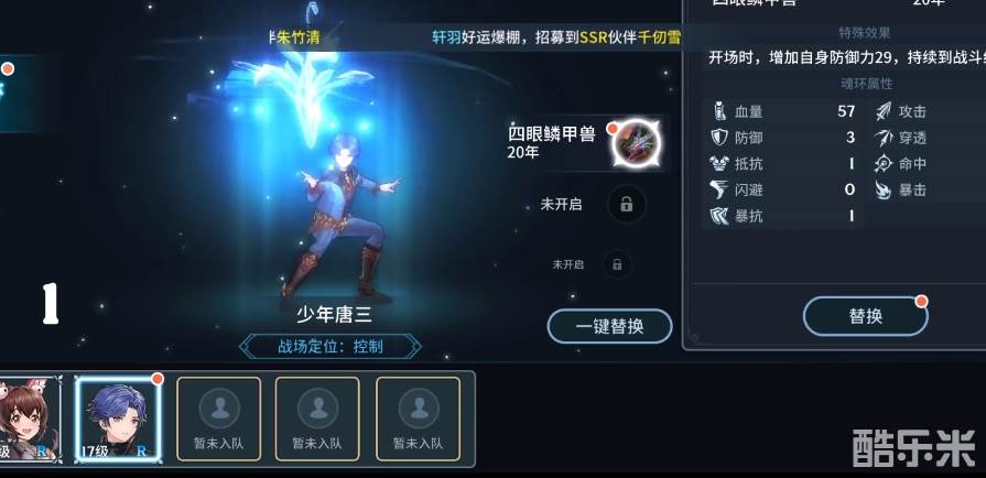 唐三:唐三虽然说是游戏中的一个初始角色,但作为游戏的主角,在能力的设定上是非常不错的。大家都知道唐三的武魂是蓝银草,而这个武魂的输出能力虽然说不高,但是在控制能力上却是很强的。战斗中蓝银草不仅有眩晕的控制,还有几率封印对手,让敌人无法进行攻击。有了控制在面对高难度挑战的时候,会相对好打一下。