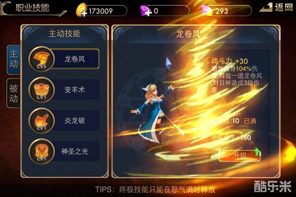 技能构成为三个职业技能及一个怒气技能的3+1模式,职业技能只有冷却时间的限定;冷却时间过后可继续释放,怒气技能需要怒气槽满后方能释放等待时间较长。