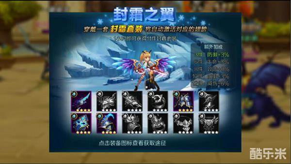 这是初进游戏中套装收集的引导,点击可查看一套“封霜之翼”所需要的各种条件。