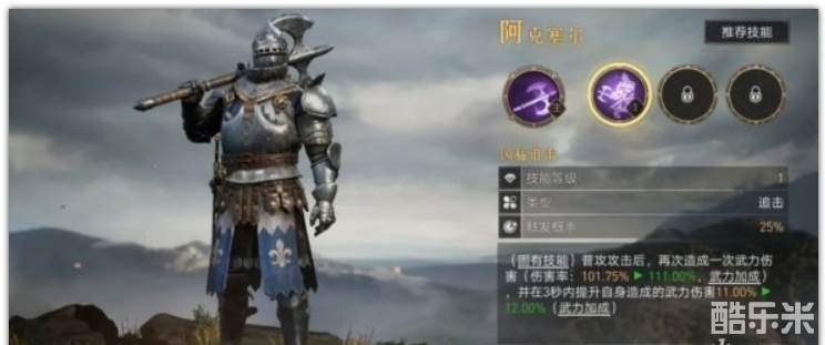 五星技能可选择致命一击、冲锋的极意;四星技能可选择巨石冲击、怒涛之击等输出向。