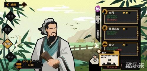 1、该体系绝对的核心是墨子,墨守可以提供回血和加攻来弥补低军心带来的debuff,同时他的循环政策能无限刷战力来弥补后期的战力差。但低军心流遇到的问题和高腐化一样,民生和军事暂时还没有出现适配低军心的名臣,同时政治名臣有两个同流派的名臣出现无效内卷的现象。这就导致这套体系强度不低却略显尴尬。但是一切在春秋演义高难度剧本中得到了缓解。首先是军事政策的鼓舞可以有效缓解军心的溃逃。同时政治名臣魏无忌的地位提升。提供的士子资源刚好能补上政治里的士子科技点的空缺。春秋本质就是资源战,一旦稀有资源足够点出核心政策就起飞。