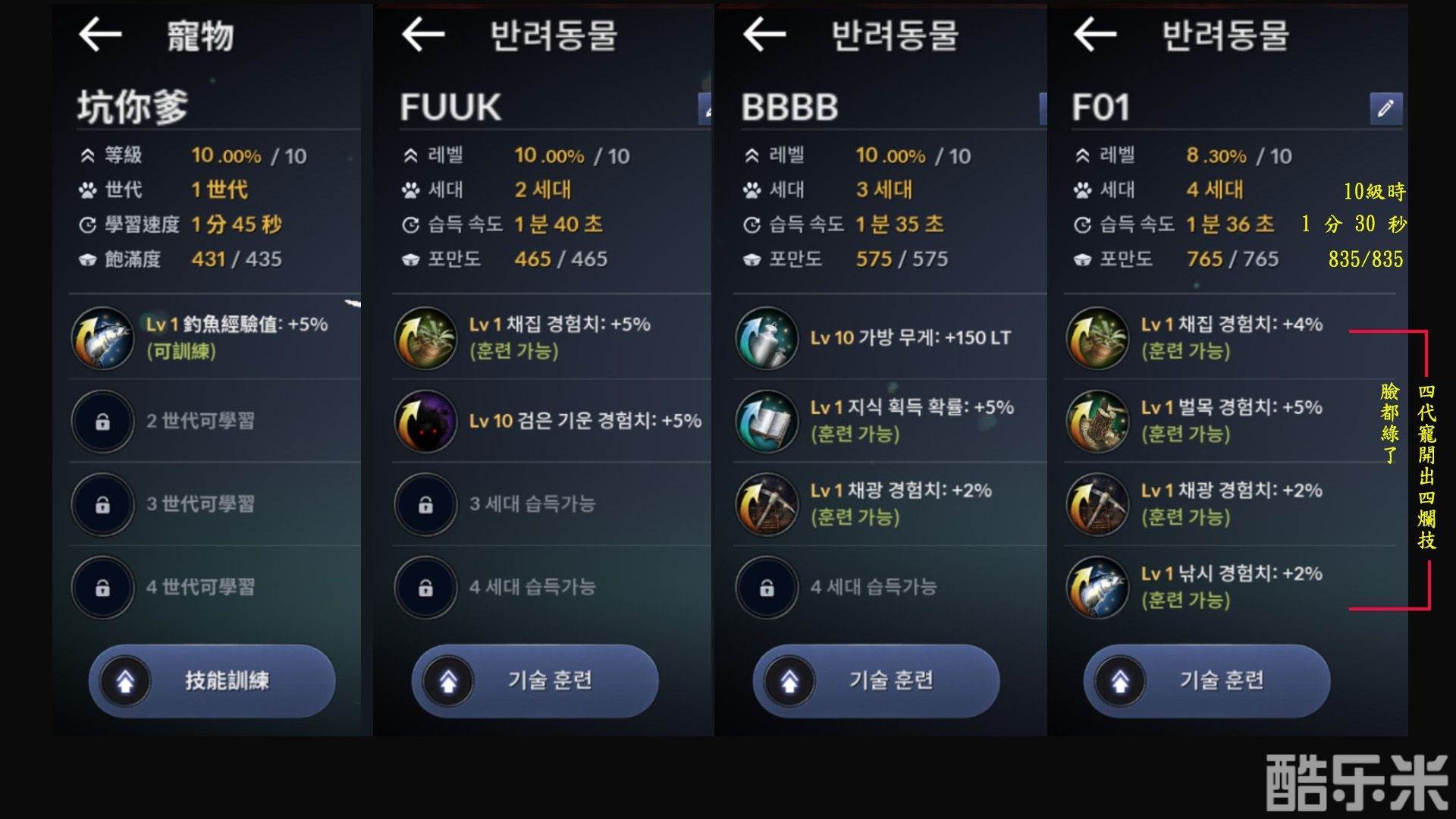 (拿到一世代好技能时,绝对不要无脑先去交换升世代,因为如果你另两只宠物还没有好技能,先把烂的拿去交换洗技能,会比较划算。看不懂没关系,最底下有图例)