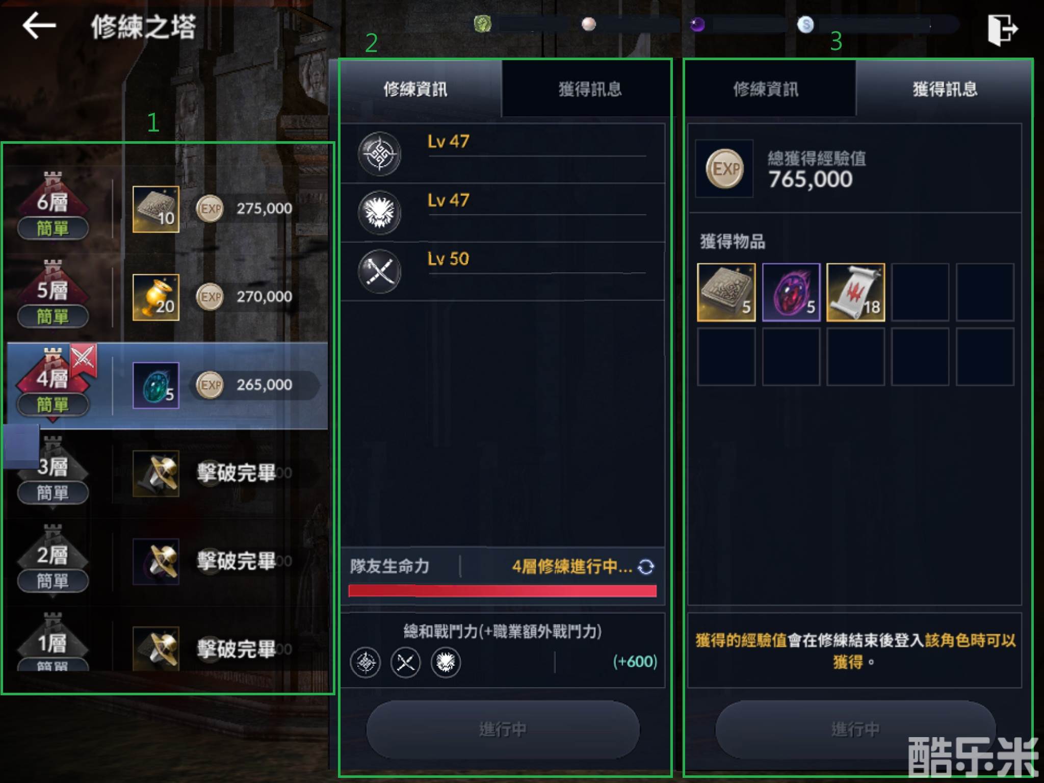 - 修练之塔会进行至派遣修练的角色生命力耗尽为止