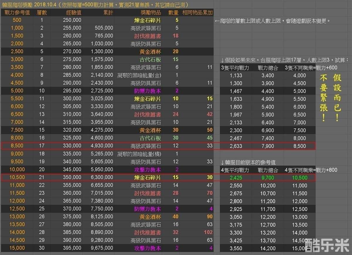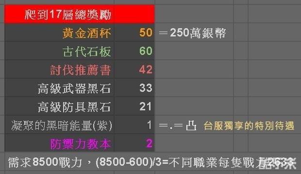 以无课玩家水平,爬到17层应该不难,奖励整理如下: