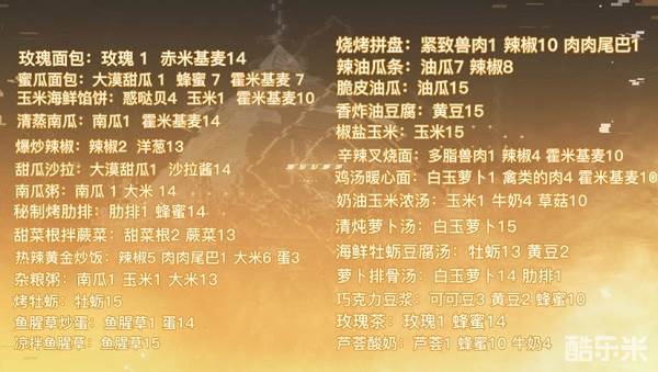3.100%烹饪需要15个食材,我们只需要用14个普遍食材加上一个稀缺食材一样可以解锁全新菜谱,这样剩下了很多的时间与精力。