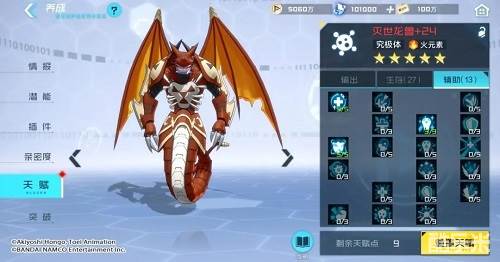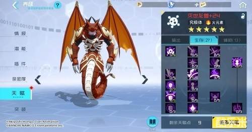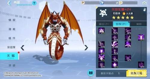 《数码宝贝:新世纪》灭世龙兽天赋加点 进化路线